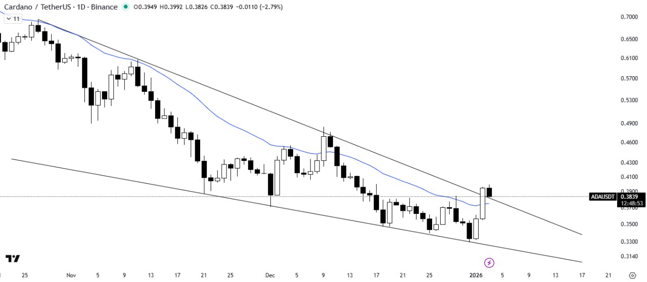 ADA has broken out of the falling wedge pattern and is currently retesting the breakout level. The 21MA is acting as strong support, indicating bullish strength.