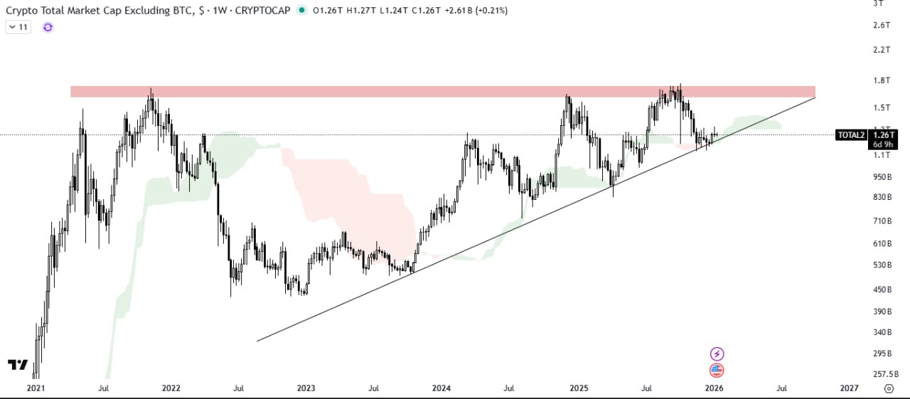 The Ichimoku Cloud is acting as strong support, indicating underlying strength. If this level continues to hold, we can expect a further upward rally in the altcoin market.