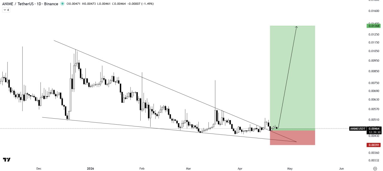 ANIME has broken out of the falling wedge pattern and successfully completed a retest, confirming the strength of the move. As long as it holds above the breakout level, a strong bullish rally is likely to continue.