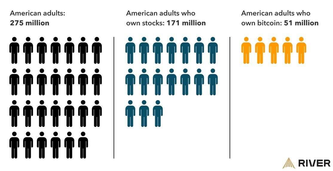 According to River, around 51M Americans roughly 1 in 5 adults own Bitcoin.