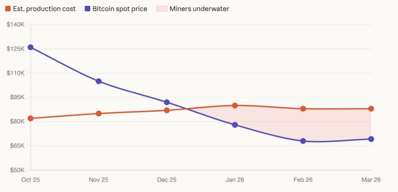 The average cost to mine 1 BTC has climbed to around 88K by mid-March, while Bitcoin is trading near 69K putting miners at an estimated 19K loss per coin.
