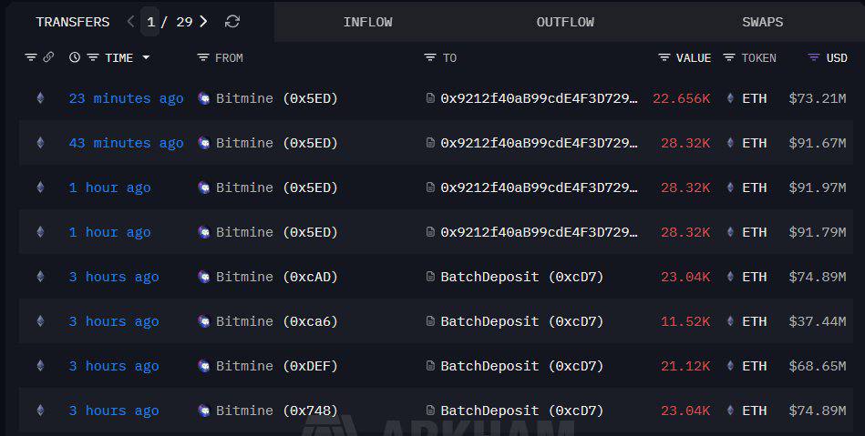 Bitmine continues to expand its Ethereum exposure, staking an additional 186,336 ETH worth roughly 604.5M.