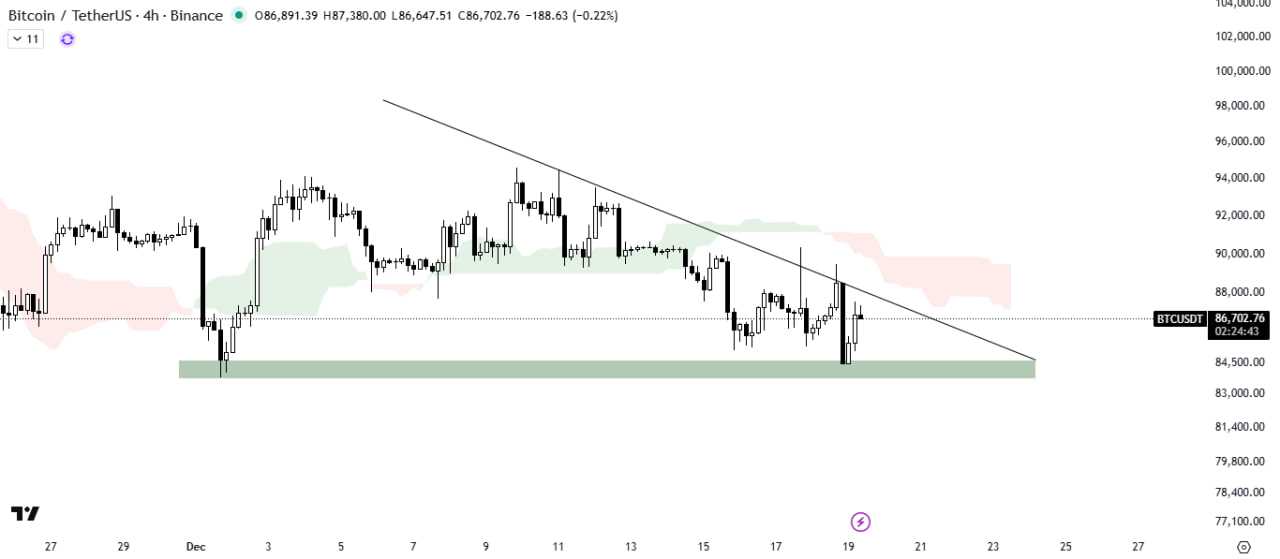 Bitcoin is rebounding from the horizontal demand zone of the descending triangle pattern and is currently trading below the resistance trendline.