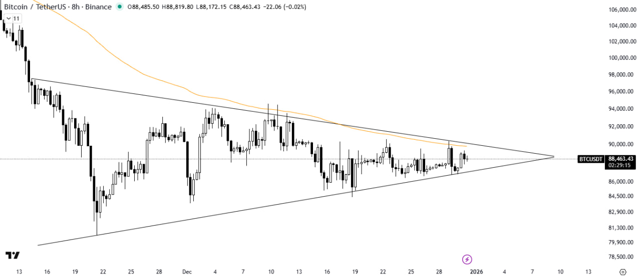 A breakout would confirm a bullish trend, while a breakdown of the triangle could signal a downward move.