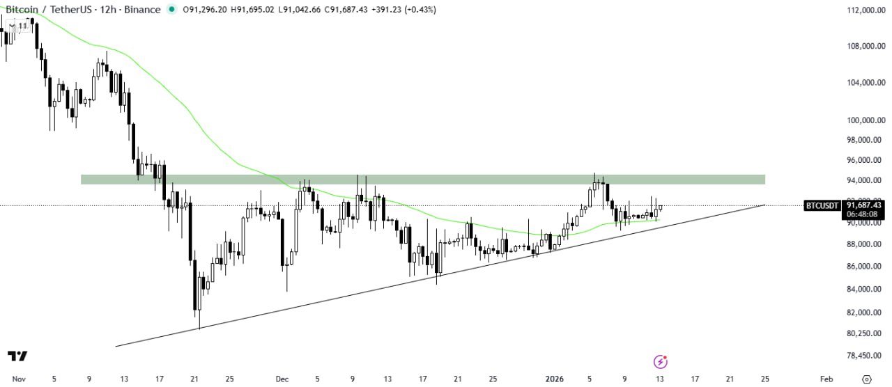 Bitcoin is consolidating inside the ascending triangle pattern. Currently, it is rebounding from the 50MA, which is acting as a support. We need to wait for a confirmed breakout or breakdown to determine the next directional move.