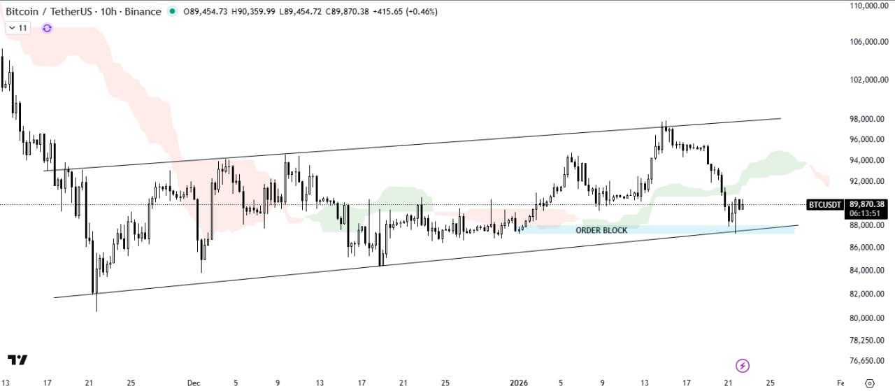 Bitcoin is rebounding from the channel support trendline and has also filled the order block.