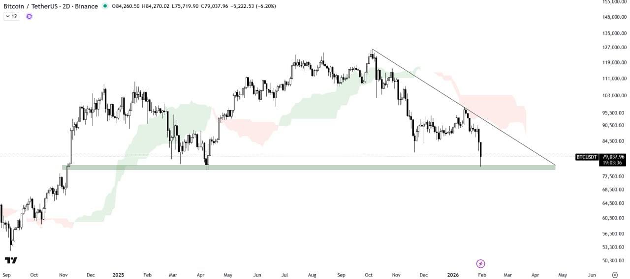 Bitcoin is facing rejection from the resistance trendline and is currently rebounding from a key horizontal demand zone. The Ichimoku Cloud is acting as a resistance barrier.