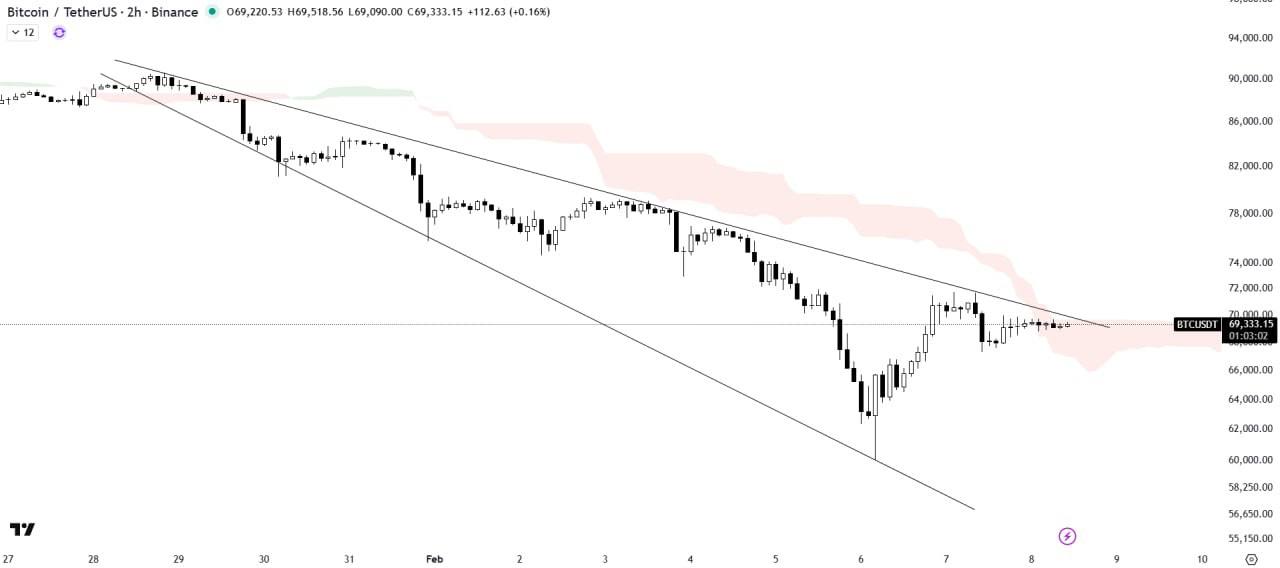 Bitcoin is trading below the resistance trendline of the descending broadening wedge pattern and is currently moving inside the Ichimoku Cloud.