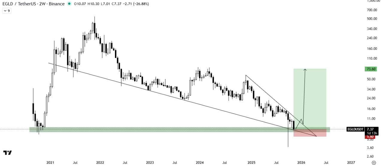 EGLD is trading above the strong support trendline of the wedge and is also moving within a major demand zone.