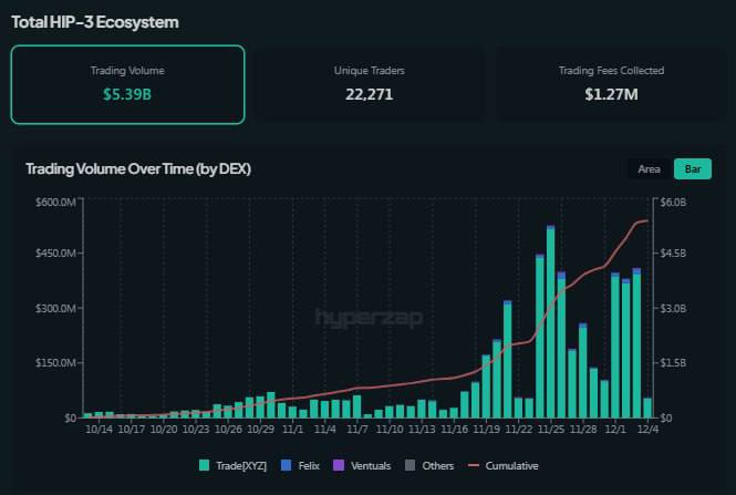 HYPERLIQUID S HIP-3 MARKETS BLOW PAST 5B IN VOLUME