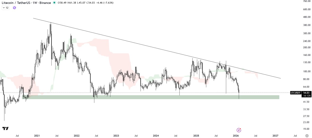LTC is rebounding from the horizontal demand zone of the descending triangle pattern. Holding this level could lead to a further upward rally.