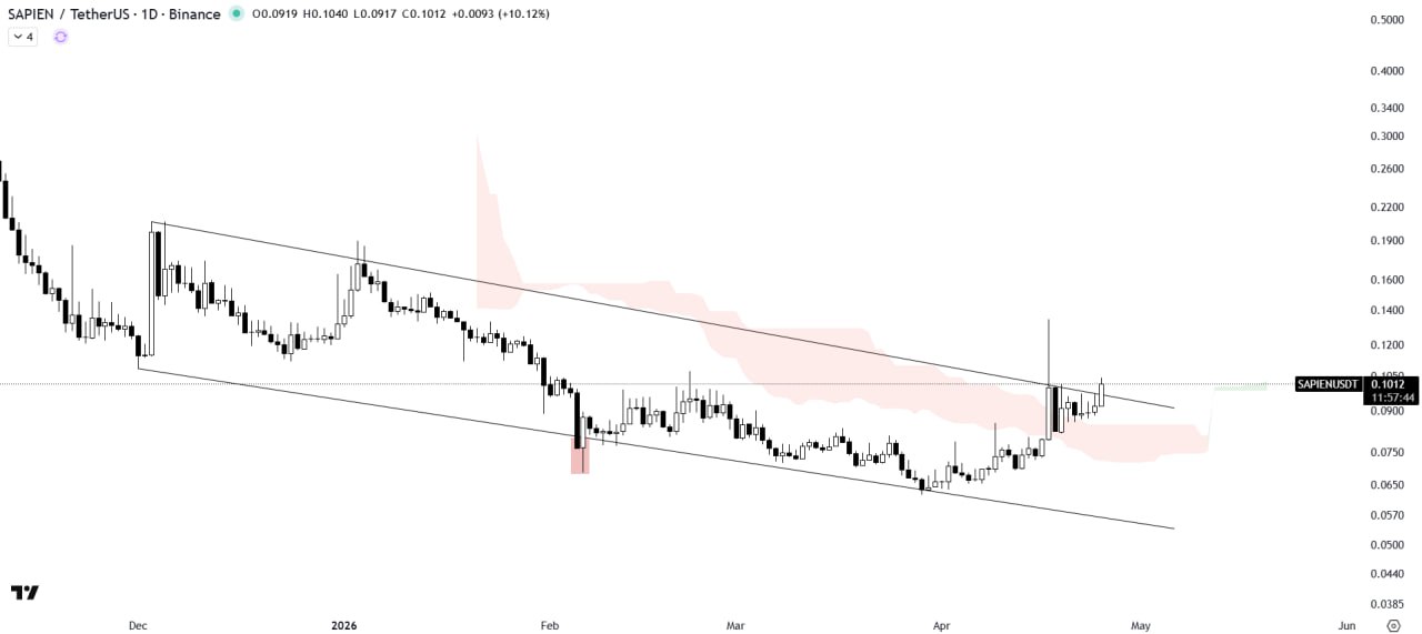 SAPIEN has broken out of the descending channel with strong volume confirmation, signaling a shift in momentum.