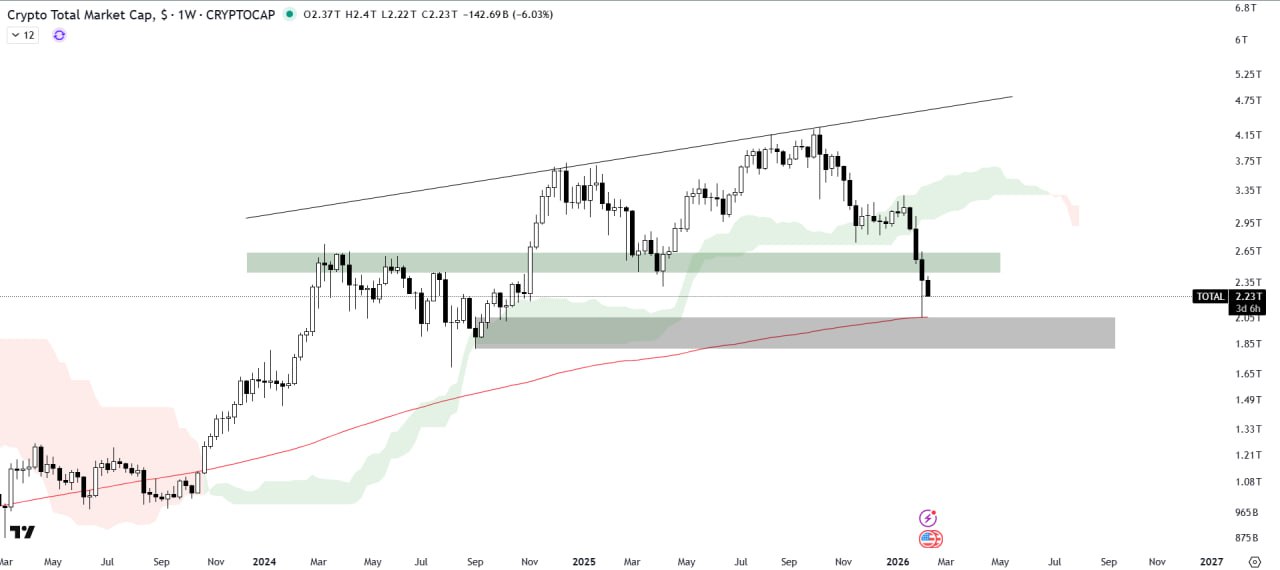 The total crypto market cap is currently trading above the 200 Moving Average, which is acting as a strong dynamic support level. This indicates that the overall macro trend remains structurally bullish as long as price continues to hold above this key level.