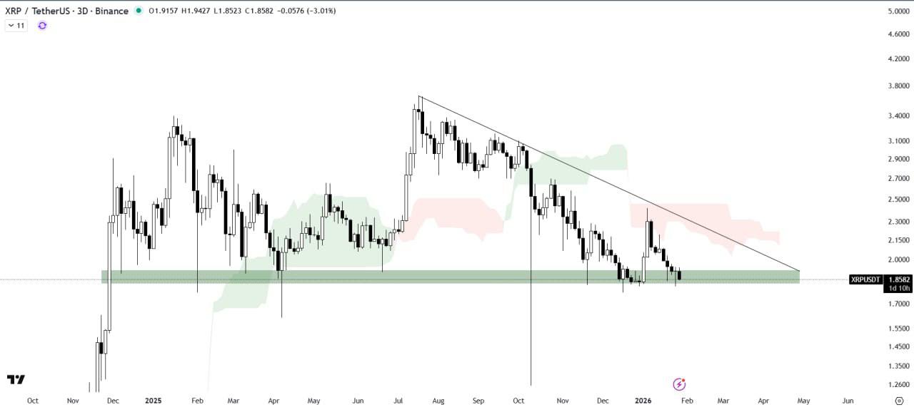 XRP is trading within a strong horizontal demand zone of the descending triangle pattern. A potential bounce from this level is possible.